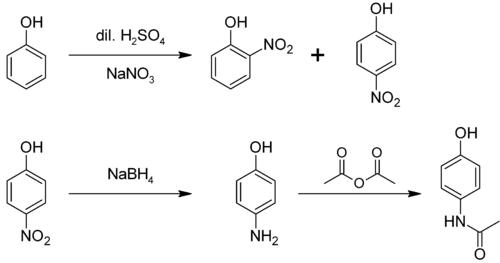 پارا-آمینو فنول یک ساختمان مرکب بلوکی دارد. پارا-آمینو فنول نتیجه نهایی بخش میانی تولید صنعتی استامینوفن است، که از ترکیب پارا-آمینو فنول با انیدرید استیک بدست میآید.[3][4][5]