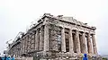 پارتنون، پرستشگاه یکی از الهههای یونان به نام آتنا (الههٔ عقل و خرد و جنگ) است که در قرن پنجم قبل از میلاد توسط مردم آتن ساخته شدهاست. این معبد که مهمترین بنای باقیمانده از یونان باستان میباشد، غالباً به عنوان نقطه اوجی در پیشرفت دورۀ معماری دوریک شناخته میشود. مجسمههایی که در تزئین این بنا استفاده شدهاست، یکی از مهمترین بخشهای هنر یونانی است و سمبلی از یونان باستان و دموکراسی آتنی است و یکی از بزرگترین مقبرههای فرهنگی دنیاست. معمارانی چون «کایمراتیس» و «ایکتینوس» در ساختمان آن نقش اصلی را داشتهاند و در فاصلهٔ سالهای ۴۳۲ و ۴۴۸ پیش از میلاد ساخته شدهاست. بنا دور ستونی است در ایوان جنوبی معبد پارتنون برخلاف پرستشگاههای دیگری به جای ۶ ستون از ۸ ستون (سبک ۸ ستونی) و برای طول آن ۱۷ ستون در نظر گرفته شدهاست. طول و عرض آن ۳۱×۷۰ متر و ارتفاع آن ۱۳/۷۲ متر که ارتفاع هر ستون ۱۰/۴۳ متر است و در این بنا دو شیوهٔ دوریک و ایونیک تلفیق شدهاند و در ایجاد نقوش در چهار گوشیهای تزینی و سنتوریهای معبد نهایت دقت را به کار بردهاند.
