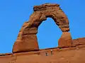 طاق Delicate arch. توجه به اشخاص ایستاده در پایین تصویر (جهت مقیاس) داشته باشید.