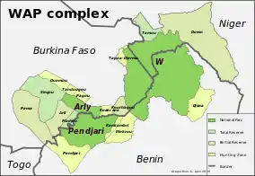 پارک پنجاری منطقهای به وسعت ۲۷۵۵ کیلومتر مربع است که در انتهای شمال غربی بنین قرار دارد. این پارک بخشی از منطقه حفاظت شده موسوم به WAP است که از سرواژه پارکهای ملی دابلیو (W National Park) و آرلی (Arli National Park) و Pandjari گرفته شده و گسترهای وسیع از مناطق حفاظت شده میان بنین، بورکینا فاسو، و نیجر را در بر میگیرد.
