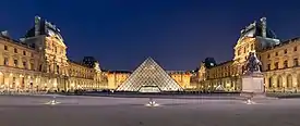 ![]() ![]() ![]() ![]() در جهت عقربههای ساعت از بالا:نمایی از شهر پاریس از رود سن بههمراه برج ایفل، کلیسای نوتردام پاریس، هرم موزه لوور، و طاق پیروزی | |
