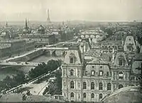در سال ۱۸۸۹ به مناسبت بزرگداشت صدمین سال انقلاب فرانسه و نمایشگاه جهانی صنعت و تکنولوژی، یک برج تمام فلزی توسط مهندس مشهور فرانسوی گوستاو ایفل در مرکز پاریس ساخته شد.[40] این برج که به برج ایفل مشهور است، ابتدا به عنوان یک بنای موقت ساخته شد، اما پس از پایان نمایشگاه پابرجا ماند و نماد زیبای دیگری به پاریس افزود. برج ایفل تا سال ۱۹۳۰ بلندترین برج جهان بود.[41][42][43][44] متروی پاریس نیز همزمان با افتتاح نمایشگاه جهانی در سال ۱۹۰۰ گشایش یافت. برگزاری این نمایشگاه نماد مهمی از جایگاه برتر پاریس به عنوان قطب فناوری، توریستی و تجارت در جهان آن روز بهشمار میرفت.[40]