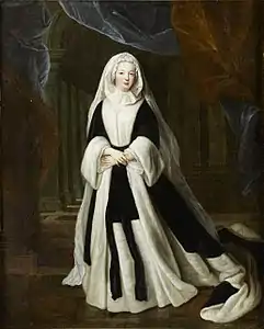 لوئیس فرانکوئس د بئوربون، بنیانگذار پالایس بئوربون، به عنوان یک بیوه به تصویر کشیده شدهاست (۱۷۳۷)