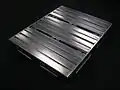 جراحی پالت قوی هستند و در حال استفاده برای بارهای سنگین بالا انباشته زیاد و طولانی مدت خشک سازی و بارهای نقل مکان کرد و با سوء استفاده از سیستمهای لجستیک. آنها اغلب استفاده میشود برای مهمات نظامی است.[18] فلزی را تشکیل میدهند کمتر از ۱٪ از بازار است. مواد عبارتند از فولاد کربن، فولاد ضد زنگ، فولاد و آلومینیوم. از این فولاد کربن ارائه میدهد و دوام عالی در کمترین هزینه. فولاد جراحی نیاز ندارد رنگ پوشش و ترجیح داده است برای چنین برنامههای کاربردی به عنوان اتاق تمیز و محیطهای. فولاد کربن واحدهای گرانقیمت در مقایسه با چوب و استیل و آلومینیوم در مورد هزینه ۲–۳ بار که از فولاد کربن. هزینههای طولانی مدت میتواند پایینتر از چوب است. بهطور کلی مزایای استفاده از فلز پالت استحکام و سفتی و دوام عالی اشکال رایگان بدون تراشههای بهداشتی و قابل بازیافت است. معایب عبارتند از: بالاتر از قیمت اولیه قابل توجهی وزن کم اصطکاک و حساسیت به زنگ زدن (کربن استیل). فلزی است که در درجه اول مورد استفاده در اسیر یا حلقه بسته محیطهای که در آن دوام و محصول حفاظت کلیدی عملکرد مورد نیاز است. واحدهای فلزی امروز بهطور فزایندهای با قیمت رقابتی و سبک وزن است. اولیه صنایع که با استفاده از پالت فلزی شامل خودرو و دارویی و چمن تراکتور و موتور سیکلت و لاستیک.[19]