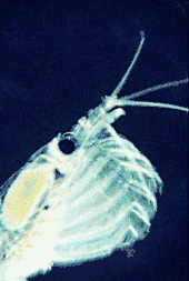 کریل در حال تغذیه از آب پر از فیتوپلانکتون. سرعت این عمل در این تصویر ۱۲ بار آهستهتر نشان داده شدهاست.