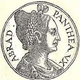 پانتهآ (در لغتنامه دهخدا به صورت پانتهآ آمده) بانوی بسیار زیاد جذاب و زیبایی از اهالی شوش بود که به اسارت کوروش کبیر در آمد و بعد از ماجراهایی کوروش او را به شوهرش آبراداتاس که فرماندار شوش و در تابعیت بابل بود، رساند. آبراداتاس هم پس از مشاهدهٔ جوانمردی کوروش کبیر به او پیوست و در راه دفاع از او جان خود را فدا نمود. کوروش آرامگاهی برای این زوج ـ پانتهآ و آبراداتاس ـ بنا نهاد که گفته میشود بقایای آن هنوز در عراق باقیست. بر ستونی که به خط بابلی نام آن زن و شوهر حک شدهاست، نوشتهاند «علم داران».[1][2][3]