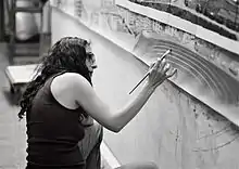 پانتهآ رحمانی در حال کار روی مجموعه تهران در آتلیه شخصیاش