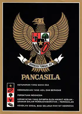 - مشارکتکنندگان ویکیپدیا. «Pancasila (politics)». در دانشنامهٔ ویکیپدیای انگلیسی، بازبینیشده در ۱۸ دسامبر ۲۰۱۷.