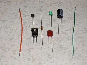 چند نوع سیم پایه یا لید. یک سیم لید یک سیم فلزی است که به قطب الکتریکی یک قطعه الکترونیکی متصل است. سیم پایه معمولاً یک سیم مسی پوشش دار است.