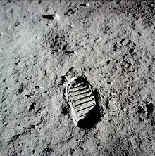 ![]() Astronaut باز آلدرین with scientific equipment, US flag, television camera and ماهنشین آپولو at Tranquility Base. Photo by نیل آرمسترانگ | |