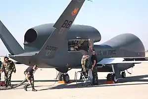 | گروه نگهداری در حال آمادهسازی یک هواپیمای بدون سرنشین در پایگاه هوایی بیل | |||