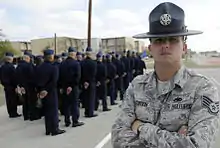 ![]() Military Training Instructors and New Airmen participating in the Basic Military Training graduation parade. | |