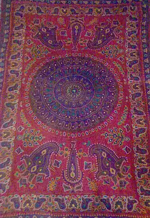 نوعی گل و بته که با دست بر روی شالهای کرکی میدوزند.