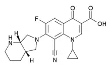 8-Cyano-1-cyclopropyl-7-(1S,6S)-2,8-diazabicyclo-(4.3.0)nonan-8-yl)-6-fluoro-1,4-dihydro-4-oxo-3-quinoline carboxylic acid | |