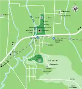 نقشه مجتمع معابد پرامبانان که طرح متحدالمرکز ماندالا را نشان میدهد.