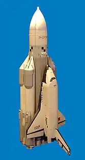 - پرتابگر انرگیا پرتابگر ساخت شرکت موشکی اسپی کارالیوف و صنایع فضایی انرگیا بود که برای انتقال محمولههایی با وزن ۱۰۵ تن به مدار نزدیک زمین توسعه داده شده بود.[8] پرتابگر انرگیا قبل بازنشستگی دو پرواز را انجام داد؛ که پرواز اول در هنگام قرار دادن محموله ای به وزن ۸۰ تن در مدار زمین با مشکل مواجه شد و مأموریت ناموفق بود. در پرواز دوم شاتل فضایی بوران را با موفقیت به مدار نزدیک زمین ارسال کرد.[9]