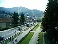 ![]() View of Predeal from Clăbucet-plecare Chalet (1445m); behind is the Postăvarul massif | |