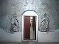 داخل راهروها حجرههای کوچکی است که برای طلبههای مکتب برهمنی در نظر گرفته شده و داخل برخی از اتاقها نقاشیهای مذهبی دیده میشود که یکی از مهمترین آنها خدای فلوتزن به نام کریشنا است.[1][2]