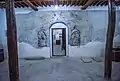 ساختمان اتاق معبد و محراب در قسمت شمال معبد واقع شده و دور اتاق معبد نیز از طاقچه و قابهای کور ساخته شدهاست و دورتا دور اتاق معبد نیز ۴ راهرو وجود دارد که در گذشته زوار به دور آن زیارت میکردند.