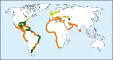 | گستره پراکندگی، تخمگذاری، و زمستانگذرانی پرستوی دریایی تکزرد | |