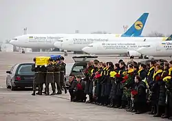 - استقبال از پیکرهای جانباختگان اوکراینی پرواز ۷۵۲ در کییف