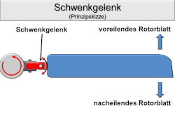 - لولاهای الاکلنگی (Teeter hinges) مسئول بالانس شدن تیغهها حین چرخش هستند و این امکان را فراهم میکنند که تیغه شیب متناسبی به بالا یا پایین بردارد. برای نمونه اگر یک تیغه شیبی به بالا بردارد، تیغهٔ دیگر میتواند به همان نسبت در زاویه پایین شیب بردارد تا بالانس برقرار شود. این شرایط ممکن است در شرایطی رخ دهد که خلبان مانور ویژهای در دستور کار داشته باشد و با سکان بالگرد بشدت برخورد نماید یا بادهای شدید موجب تغییر مکان تیغهها شوند. از این رو تیغهها باید در راستای الاکلنگی نیز بصورت هماهنگ امکان تغییر زاویه را داشته باشند.