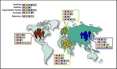 تنوّع ساختاری (Structural Variation) تنوّع در ساختار کروموزوم است. تنوّعهای ساختاری مانند تنوّعهای کپی-تعداد، درجها، حذفها و تکرارها عامل بسیار مهمتری نسبت به چندریختیها برای شرح تنوّع ژنتیکی انسان به حساب میآیند.[12]