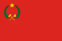 | طرح | پرچمی کاملاً سرخ با داس و چکشی طلایی رنگ و ستارهٔ سرخی با حاشیهٔ طلایی در بلوک بالایی آن. |