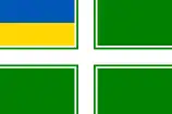| طرح | Green cross with a miniature Ukrainian flag in the upper left corner. |