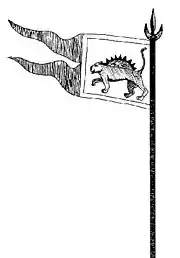 در سفرنامهٔ اوژِن فلاندَن در توصیف ارتش ایران در اصفهان مینویسد: «پرچمدار کسی را گویند که با خود پرچم میبرد، این پرچم سرخرنگ و به رویش نشان ایران که شیر و خورشید است قرار گرفته، دستهٔ پرچم به یک دست که علی را منقوش کرده منتهی است. هر دسته چند وکیل یا آجودان دارد.»[64]
