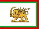 ۳. پرچم شیروخورشیدنشان در زمینهٔ سفید و دارای لبههای سبز و سرخ: در کتاب «پرچمهای ملتهای دریایی» چاپ ۱۸۹۹ م از سوی «دپارتمان نیروی دریایی ایالات متحده» تصویر پرچم دریایی ایران بدین گونه آمدهاست.[75] این پرچم شبیه پرچم کاخ شهرستانک در نقاشی مسعود غفاری میباشد.