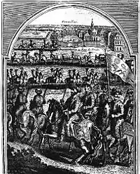 پرچمهای بریتانیا و ایران در نقاشی بازدید ناصرالدین شاه از پارک بزرگ ویندزور بریتانیا در نخستین سفر او به اروپا در ۱۸۷۳ م - اثر نیکولاس شوالیه