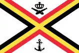 | طرح | A yellow saltire on a white field, bordered above and below in red and to the left and right in black, charged on the top with a crown above crossed cannons and on the bottom by a fouled anchor. |