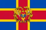 | طرح | A آبی cloth, bearing a red صلیب within a larger yellow cross. On the front of the cloth, in the center, lies the Emblem of the National Army. The reverse of the flag has the chromatic layout and features in the center the army motto in golden letters: رومانیایی: «Pentru Onoare! Pentru Patrie! Pentru Tricolor!» (For Honor! For Country! For the Tricolor!) |