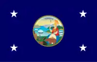 | طرح | بر اساس پرچم آمریکاییهای کالیفرنیا در شورشهای سال ۱۸۴۶ علیه مکزیک. شامل تکستاره سرخ، یک نوار قرمز رنگ در پایین و یک خرس |
