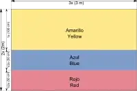 | طرح | پرچم سهرنگ زرد، آبی و سرخ. زرد نیمی و آبی و سرخ یک چهارم آن را تشکیل میدهند. |