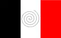 - یک پرچم سهرنگ عمودی از رنگهای سرخ، سفید و سیاه که یک مارپیچی در وسط آن بود.[55]