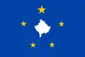 - زمینهای آبی با نقشهٔ کوزوو در میان پنج ستاره. ستارهها در اندازههای متفاوتی هستند و گروههای قومی مختلفی را، که در کوزوو زندگی میکنند، نشان میدهند. بزرگترین ستاره، قومیت آلبانیایی است.[52]