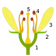 - روبهکاسبرگی: پرچمها رو به روی کاسبرگها و در نتیجه متناوب با گلبرگها قرار میگیرند.
