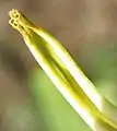 پرچمها در وسط گلها به شکل میلههای باریک و بلندی هستند که برجستگیهای کوچکی در نوک آنها دیده میشود. روی برجستگیهای نوک پرچم گرد زرد رنگی وجود دارد که اگر به آنها دست زده شود، به انگشتان میچسبند.[2]
