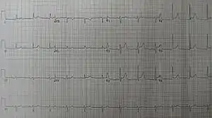 | نوار قلب نشان ده بلند شدن ST خطه از خط معمولی و خوابیدگی قسمت PR است.. | |