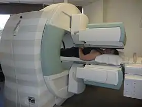 - اسکن مغزی: تزریق موادی پرتوزا، عبور آن از سد خونی مغز، تجمع آن در آسیبدیدگیهای مغزی (مثل تومورها)، و تصویربرداری و تشخیص آن توسط یکی از روشهای تصویربرداری.