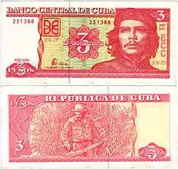 ![]() A ۳ peso banknote depicting چه گوارا | |