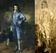 مقایسۀ تابلویی که توماس گینزبارو کشیده است (سمت چپ) و آنچه در فیلم به تصویر کشیده شده است.