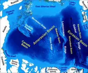 - مشارکتکنندگان ویکیپدیا. «Lomonosov Ridge». در دانشنامهٔ ویکیپدیای انگلیسی، بازبینیشده در ۲۵ ژانویه ۲۰۱۸.