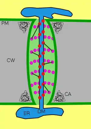 - مشارکتکنندگان ویکیپدیا. «Plasmodesma». در دانشنامهٔ ویکیپدیای انگلیسی، بازبینیشده در ۱۴ مرداد ۱۳۹۲.