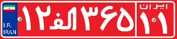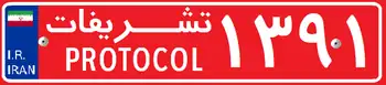 این پلاک مخصوص خودروهای دولتی اعم از سواری، اتوبوس، مینیبوس، کامیون و… است. این پلاک به شکل مستطیل است و از چپ به راست خوانده میشود و از چپ به راست شامل یک عدد دورقمی، حرف الفـ، یک عدد سهرقمی و یک عدد دورقمی در کادر مربعشکل است. اعداد و حروف این پلاک سفیدرنگ است که بر روی یک پسزمینهٔ قرمزرنگ چاپ میشود.