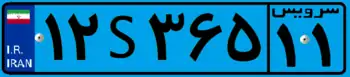 این پلاک ویژه خودروهای نیروی انتظامی (پ)، سپاه (ث)، وزارت دفاع (ز)، ارتش (ش) و ستاد کل فرماندهی نیروهای مسلح (ف) است. این پلاک به شکل مستطیل است و از چپ به راست خوانده میشود که شامل یک عدد دورقمی، یک عدد سهرقمی، و در آخر، یک عدد دورقمی در یک کادر مربعشکل است که محل صدور پلاک را نشان میدهد.