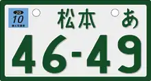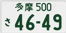 در ژاپن، دولت ملی از مسائل خودرو ثبت نام صفحات برای وسایل نقلیه موتوری از طریق وزارت زمین، زیرساختها و ادارات حمل و نقل حمل و نقل زمینی در سراسر کشور. با این حال، شهرداری محلی به جای دولت ملی ثبت وسایل نقلیه خاصی با جابه موتور کوچک است. طور کلی، ماشین با جابجایی موتور یا کوچکتر از ۲۰۰۰ سی سی دریافت ۵-سری صفحات، در حالی که ماشین با جابجایی موتور بزرگتر از ۲۰۰۰ سی سی یا بیشتر دریافت ۳-سری پلاک. تعداد در خط بالا شروع میشود با: "۵«و یا»۳" برای نشان دادن این مجموعهاست. معیارهای اضافی شامل طول، عرض و ارتفاع خودرو است. وسایل نقلیه رسمی از خانواده شاهنشاهی از نیاز به نشان دادن صفحات از جمله معاف شدهاست. وسایل نقلیه رسمی نیروهای دفاع از خود، دیپلماتهای خارجی و ارتش ایالات متحده مورد نیاز برای نشان دادن به صفحات دیگر است. صفحات در هر دو جلو و عقب خودرو نصب شده با صفحه عقب همیشه با مهر و موم ریاست به طور کامل پوشش یکی از پیچ و مهره صفحه اتصال به خودرو متصل است. صفحه تنها هنگامی که وسیله نقلیه رسیدهاست در پایان از خدمات و برای قراضه فروخته شدهاست. وسایل نقلیه جدید به خریدار تحویل داده تا صفحات نمایندگی متصل شدهاند.