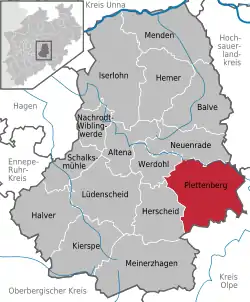 موقعیت Plettenberg در منطقه Märkischer Kreis ![]() | |